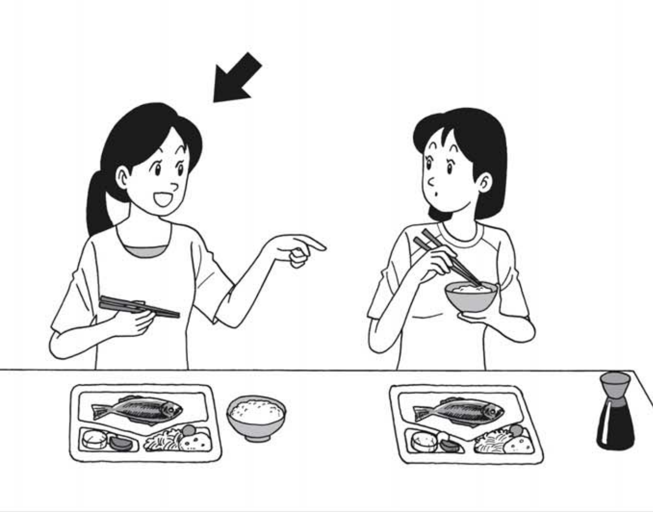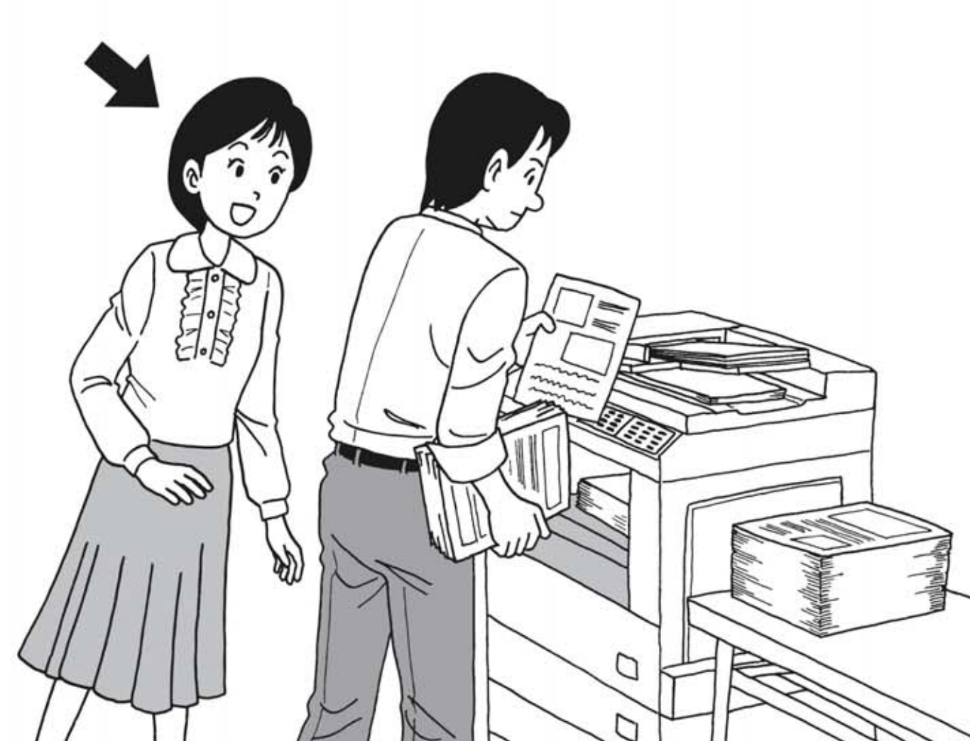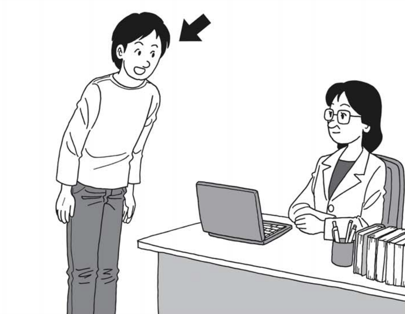 問題4では、えを見ながら質問を聞いてください。やじるし の 人は何と言いますか。 1から3の中から、最もよいものを一つえらんでください