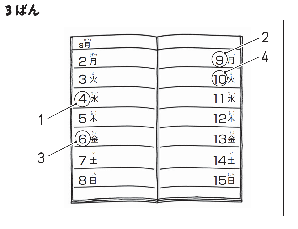 問題4は、えなどが ありません。 ぶんを きいて、1から3のなかから、 いちばん いい ものを ひとつ えらんで ください。