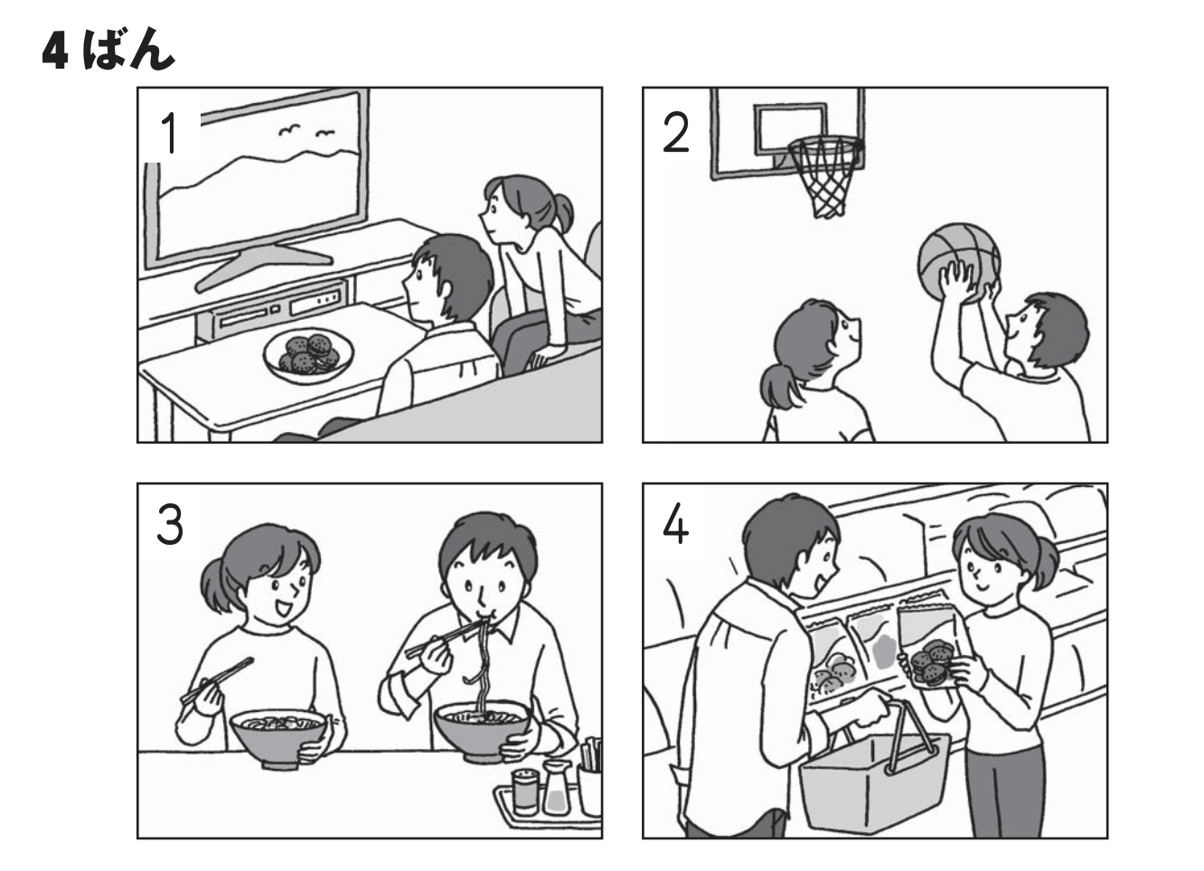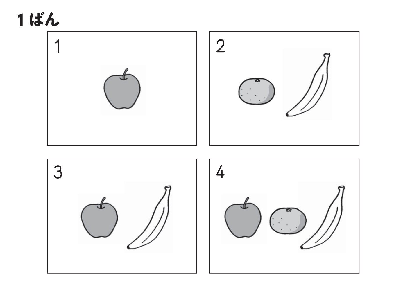 問題 1 では、まず質問を聞いてください。それから話を聞いて、 問題用紙の1から4の中から、最もよいものを一つ選んでください